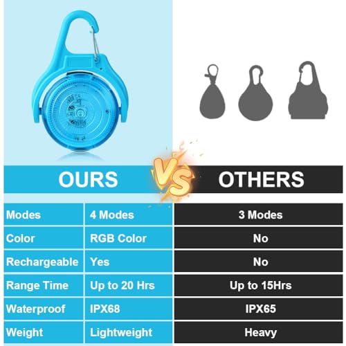 Especificaciones: Ainiv Luz Perro Noche, 2PCS Verde 4 Modos Luz para Perros de Noche, IP68 Impermeable Luz Collar Perros, USB Collar de Perro Colgante con Luz Led, Luz para Perros para La Oscuridad para Correr, Caminar