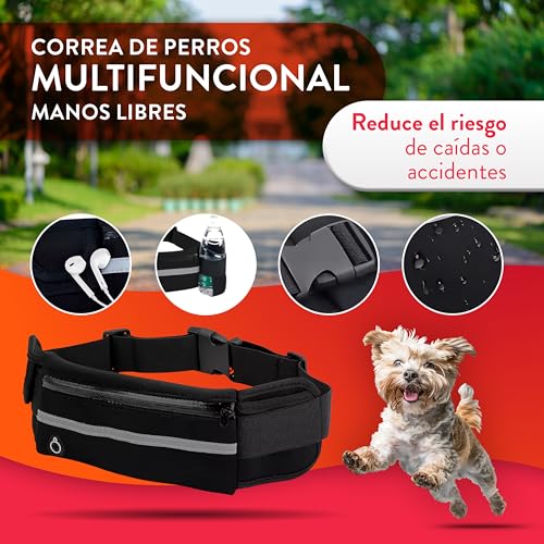 Especificaciones: Correa Perro Manos Libres, Elástica con Bolsillo, Running, Antitirones, Reflectante, Cinturón Ajustable, para Correr y Pasear.