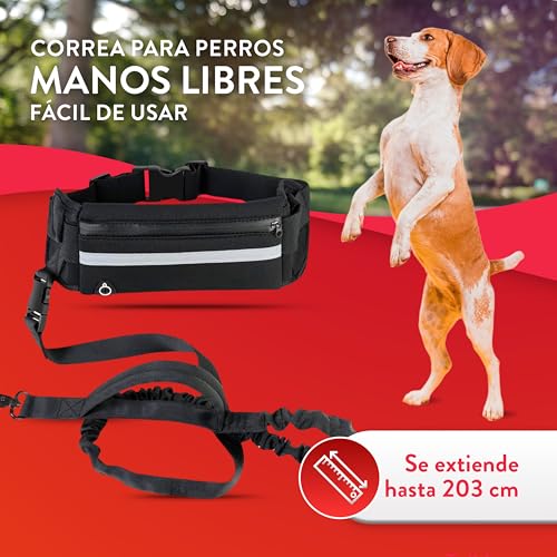 Correa Perro Manos Libres, Elástica con Bolsillo, Running, Antitirones, Reflectante, Cinturón Ajustable, para Correr y Pasear.